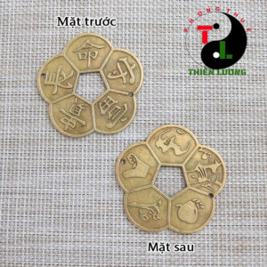 Đồng tiền hoa mài còn được gọi là (hoa mai kim tiền) được đúc theo hình hoa hoa mai năm cánh và gồm có 2 mặt. Mặt thứ nhất chạm khắc ngũ tượng trưng cho Ngũ hành tương sinh với 5 ý nghĩa: Thọ (sống lâu) – Mệnh (số mạng) – Thủ (đứng đầu) – Phú (giàu có) – Quý (thăng tiến)
